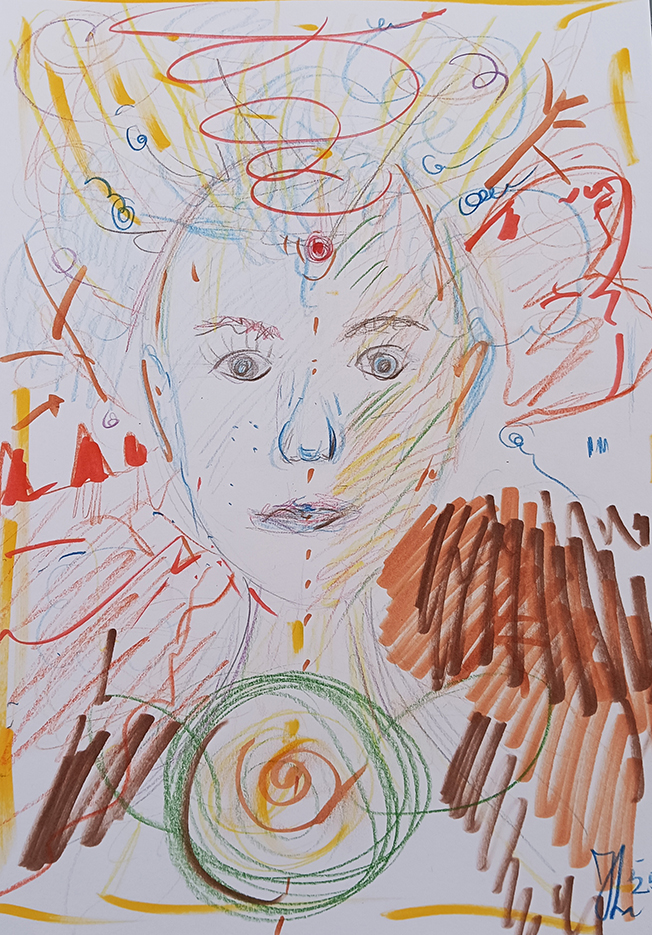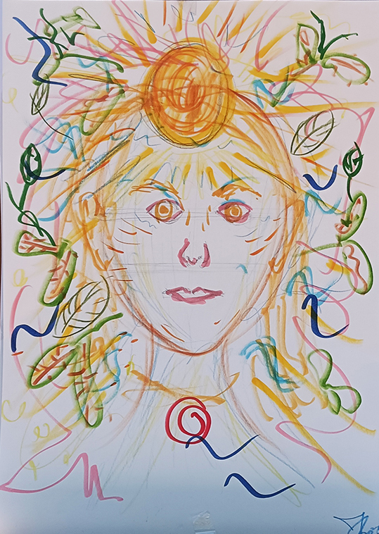 Daarnaast zal ik de artistieke expressie die ook in mijn kunstwerken voorkomen tijdens het tekenen tot uitdrukking brengen. Kleur, vormen en symbolen zijn de leidraad.
